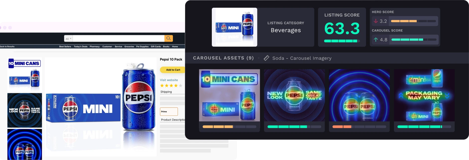 Content Effectiveness Rankings are driven by automated AI-powered predictive analytics that measure and compare the appeal of visual content across millions of ecommerce product detail pages competing for consumer attention, engagement, and conversions online.