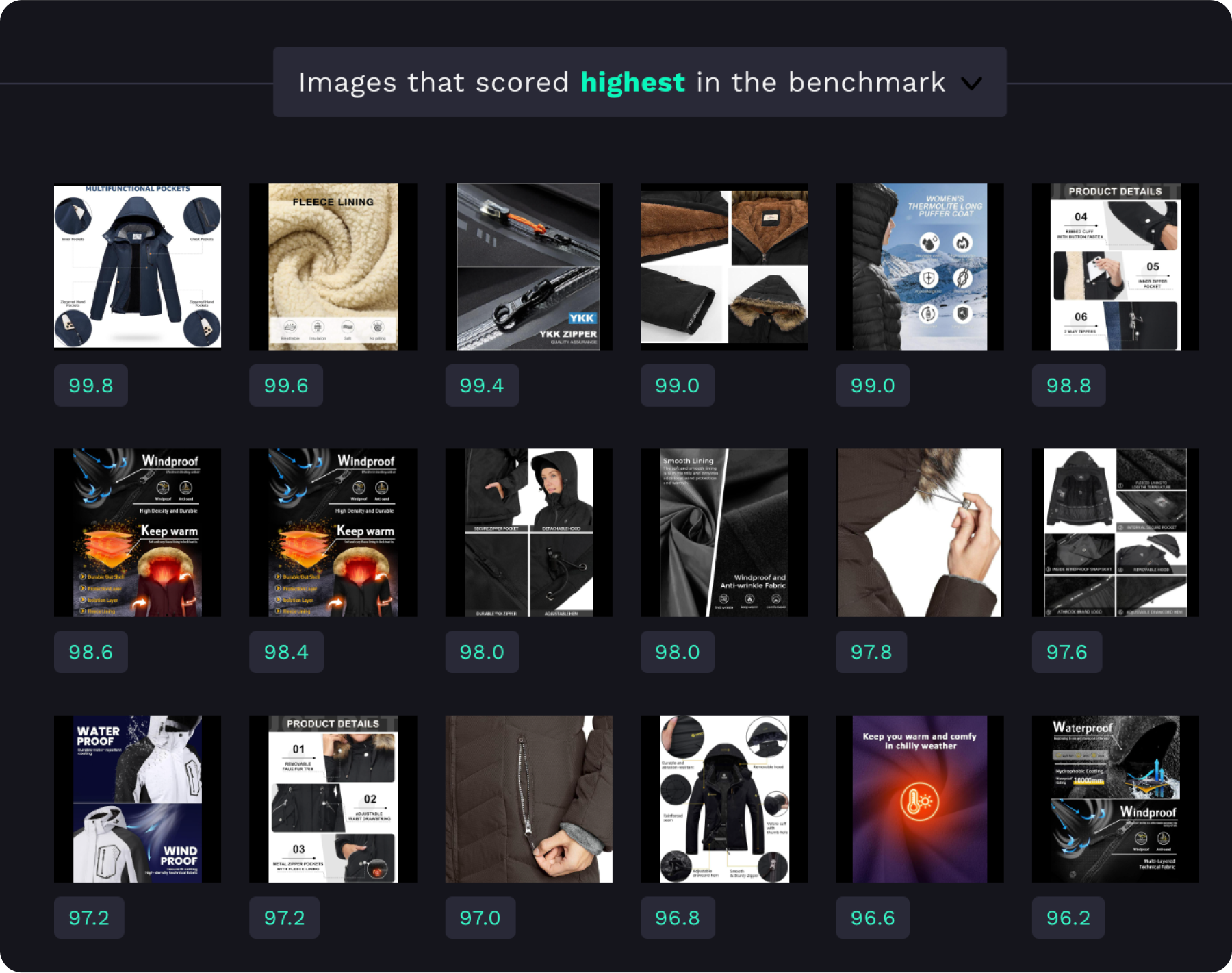 Equipped with these benchmark insights, our design team made adjustments to the three lowest-scoring images, aiming to enhance the overall score of the carousel.