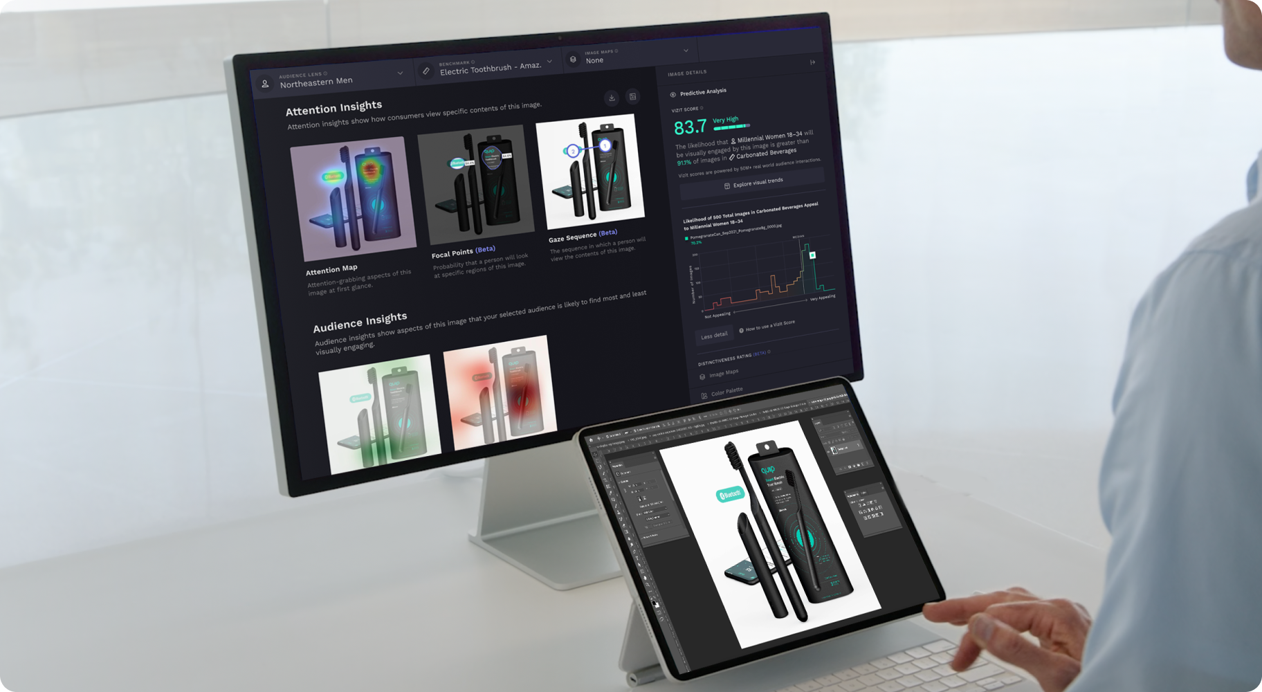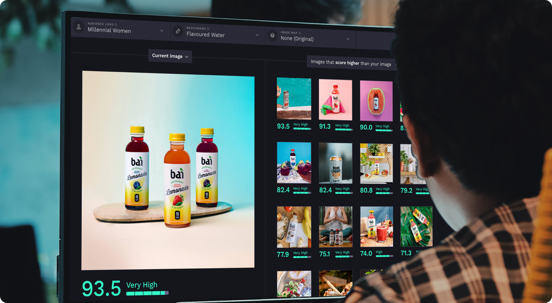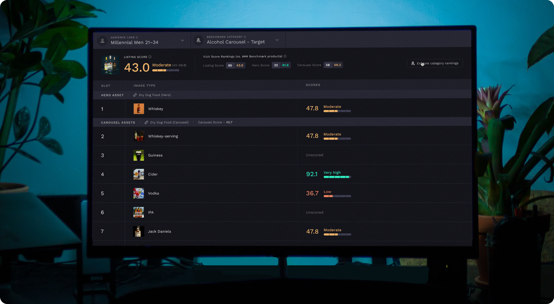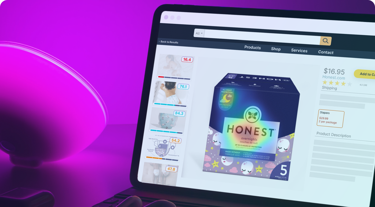 With your product page and listing imagery benchmarked, now examine the visuals that already exist in your brand’s PIMs and DAMs to surface the most impactful images for your online product detail pages and banner advertisements. Vizit’s real-time image analysis technology quickly evaluates and scores new concepts and designs as they are created to reveal the colors, angles, or scenery that drives engagement with and captures the attention of your audience.