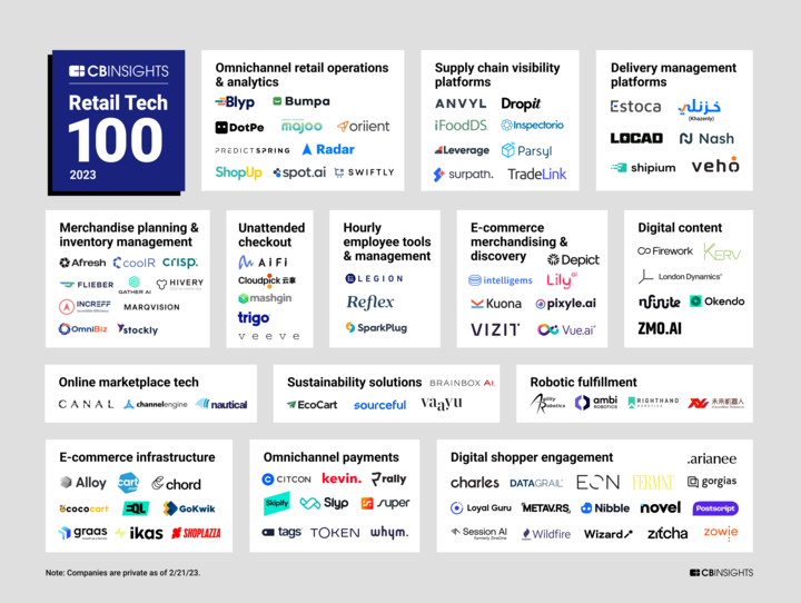 "This year’s Retail Tech 100 was more competitive than ever. Winners include early and mid-stage companies who are modernizing across areas such as store tech, e-commerce, loyalty & rewards, supply chain & logistics, and digital engagement,” said Brian Lee, SVP of CB Insights’ Intelligence Unit. “Through their efforts, this innovative cohort is empowering retailers with the technology to create more connected and personalized experiences, drive efficiencies, and improve profitability.”