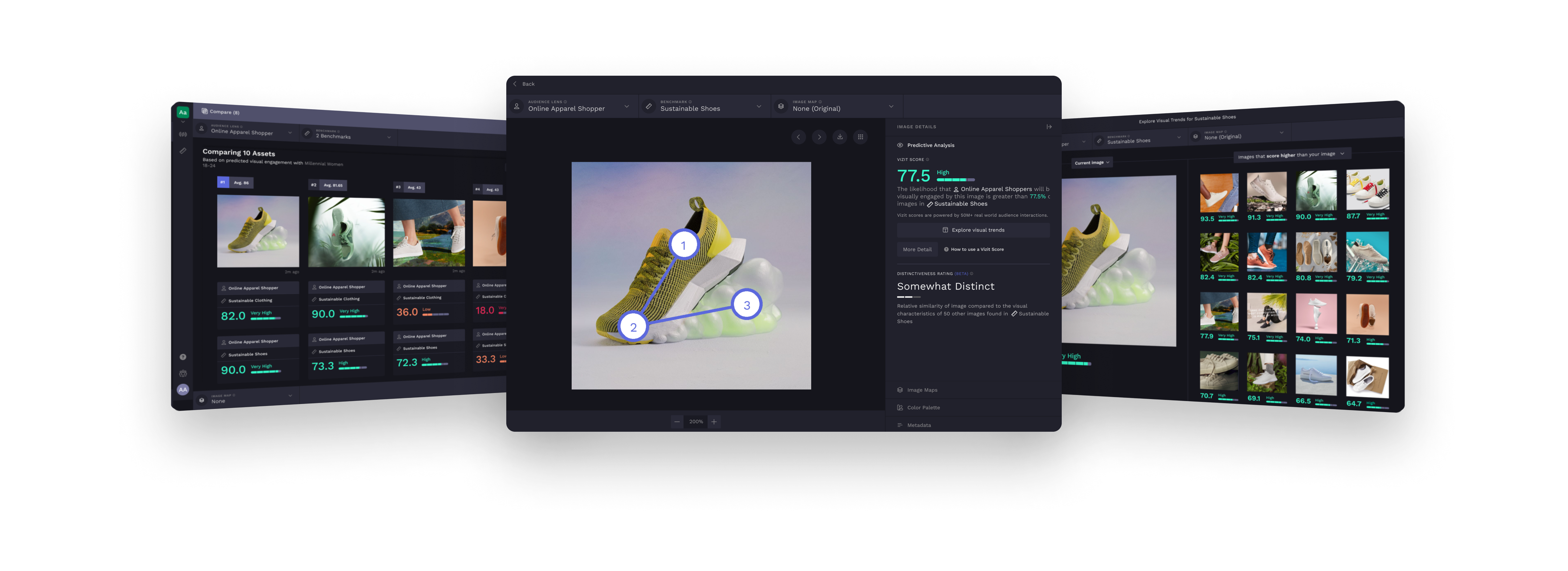 Vizit’s groundbreaking technology harnesses the organic interactions millions of consumers have with online commercial imagery to generate new AI-powered models of their visual preferences. These models—called Vizit Audience Lenses—give brands the ability to evaluate visual content and new concepts “through the eyes” of their target audiences in real time, ensuring the images used to represent their products are effective at capturing their desired audience’s attention, and are able to trigger conversion.
