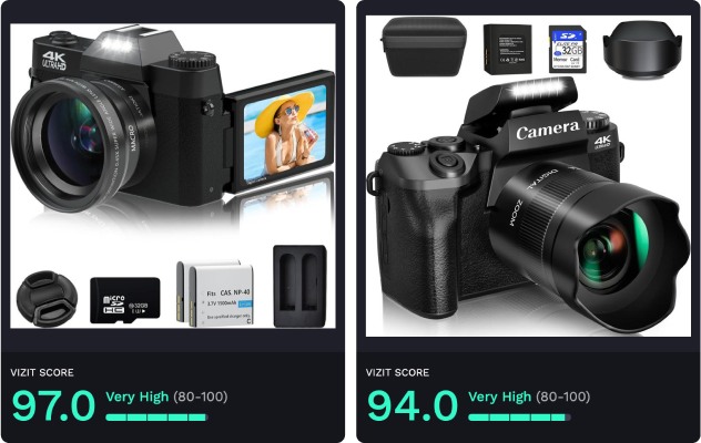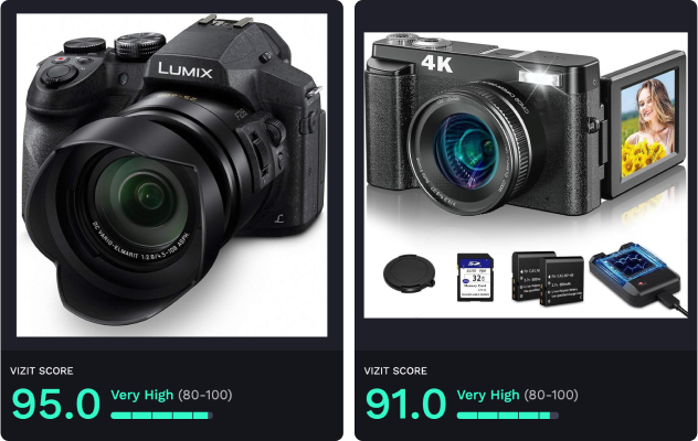 Vizit scores visual content for effectiveness with consumer audiences. Each image receives a score from 0-100 that predicts its level of effectiveness with the specified audience. Product detail page (PDP) or listing-level scores are driven by an aggregate score of the product hero or primary imagery, carousel or secondary imagery, volume of content, and sequencing of content. Content Effectiveness Rankings scores may aggregate several brand PDPs depending on retailer search and best seller lists, which fluctuate often. Higher-scoring images and PDPs are more effective and appealing to online shopper audiences.