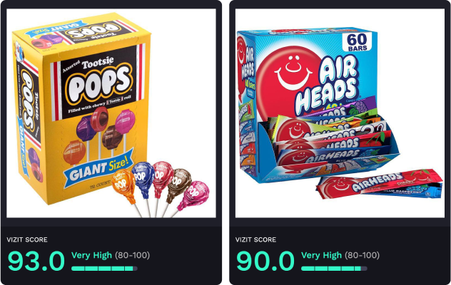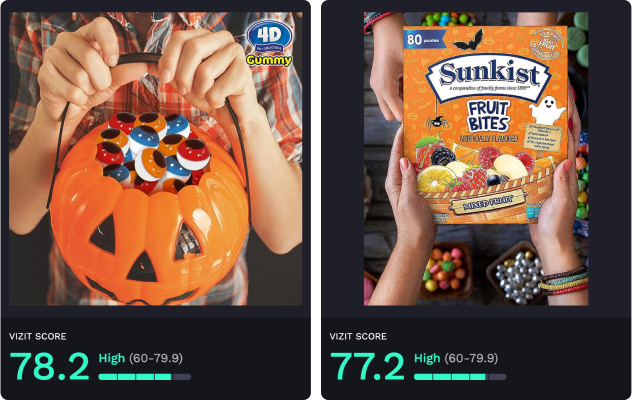 Vizit scores visual content for effectiveness with consumer audiences. Each image receives a score from 0-100 that predicts its level of effectiveness with the specified audience. Product detail page (PDP) or listing-level scores are driven by an aggregate score of the product hero or primary imagery, carousel or secondary imagery, volume of content, and sequencing of content. Content Effectiveness Rankings scores may aggregate several brand PDPs depending on retailer search and best seller lists, which fluctuate often. Higher-scoring images and PDPs are more effective and appealing to online shopper audiences.
