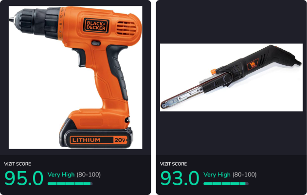 Vizit scores visual content for effectiveness with consumer audiences. Each image receives a score from 0-100 that predicts its level of effectiveness with the specified audience. Product detail page (PDP) or listing-level scores are driven by an aggregate score of the product hero or primary imagery, carousel or secondary imagery, volume of content, and sequencing of content. Content Effectiveness Rankings scores may aggregate several brand PDPs depending on retailer search and best seller lists, which fluctuate often. Higher-scoring images and PDPs are more effective and appealing to online shopper audiences.