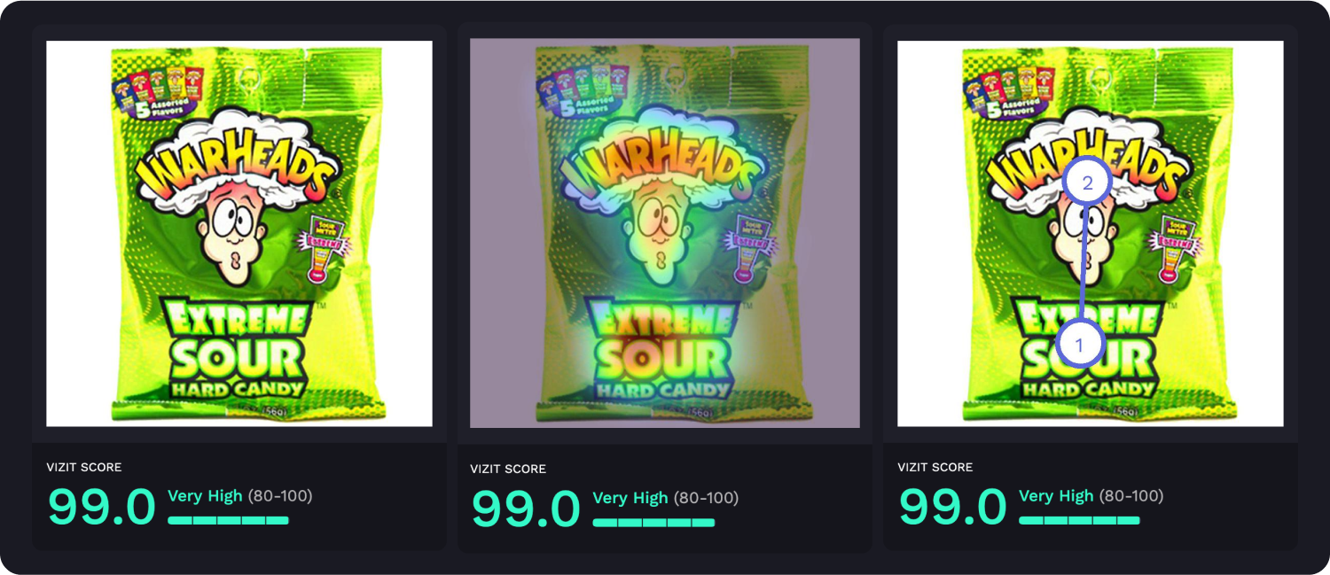 AI-powered visual appeal insights reveal specific aspects of imagery that are appealing and unappealing to a selected audience, while attention insights simulate human eye tracking and indicate where attention is likely to be garnered and how the average consumer is likely to view the elements within an image. Along with Vizit Scores, these insights are leveraged to prioritize changes that increase an image’s overall effectiveness with the intended audience.